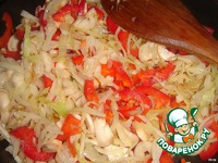 В самом конце добавить помидорки (тоже соломкой по возможности:)) и все перемешать. Посолить и поперчить по вкусу, дать потушиться вместе и пропитаться соками. |