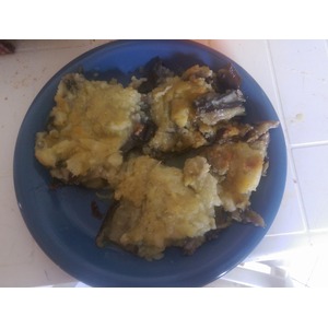 5. Вынуть блюдо из духовки, размазать пюре по поверхности, снова отправить в духовку на полчаса, до образования легкой корочки. |