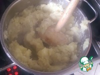 4. Смешать картофель с половиной или стаканом масла и потертым на мелкой терке чесноком, сделать не жидкое густое пюре |