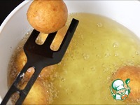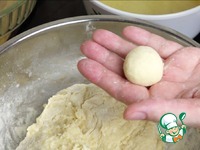 Формируем шарики, подсыпая немного муки. Шарики могут быть слегка неровными - это не важно. При жарке они станут ровненькими и красивыми. |
