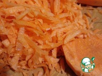 Морковь мама трет на крупной терке и выкладывает обжариваться к золотистому луку. |