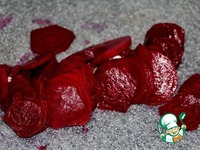 Нарезать свеклу тонкими кружочками или полукружьями, если свекла крупная. |