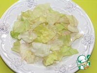 Листья салата Айсбергг порвать руками и выложить на тарелку |