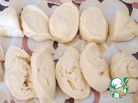 Через час вымесить тесто и разрезать его на небольшие кусочки. |