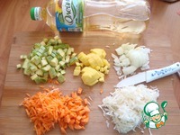 Морковь половинку режем кубиком, а половинку натираем на тёрке. Сельдерей тоже натираем. Остальные овощи режем мелким кубиком. |