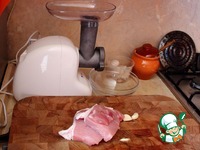 Перемалываем мясо и чеснок в мясорубке 4-5 раз, можно и больше, сколько не лень. |