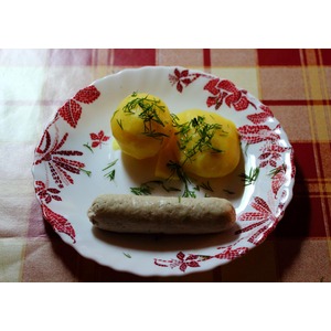 А вот и результат маленькая детская порция с простой отварной картошкой, сливочным маслом и укропом. Серенькая? Уж извиняйте, красителей и прочей химии нет! |