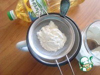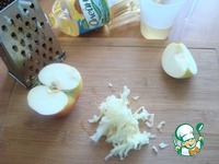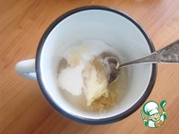Наливаем масло в посуду, добавляем яблоко, кладём сахар. Соду погасила лимонным соком и тоже отправила туда же. Всё перемешала. |