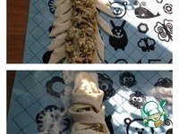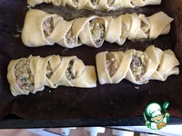 Выложить наши "лапти" на противень. Смазать взбитым яйцом и отправить в духовку до готовности при 180 гр. |
