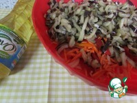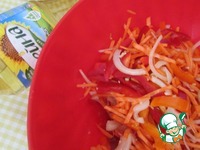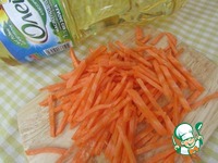 Морковь помыть, почистить, нарезать соломкой (я воспользовалась теркой для корейской моркови). |
