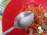Затем влить уксус и хорошо все перемешать. Остроту хе можно регулировать по своему вкусу. |