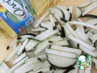 Баклажаны помыть, обсушить и нарезать брусочками (воспользовалась теркой для корейской моркови с крупными ножами). |