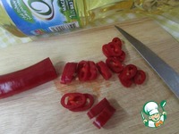 Жгучий перец нарезать кольцами, очищая от семян. |