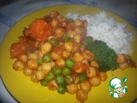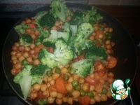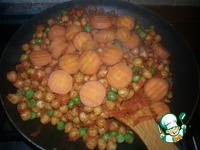 К нуту добавить порезаную морковь, и немного замороженного зеленого горошка (для яркости) |
