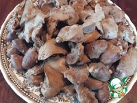Куриные потрошки отварить с морковью, кореньями, лавровым листом и душистым перцем. Я варила 2 часа в мультиварке. |