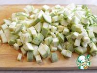 Оставшийся кабачок и боковинки порезать кубиками. |