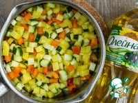 В сотейнике разогреем растительное масло и обжарим овощи до золотистости |