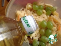 Виноград вымыть, снять с веточки. К капусте добавить распаренный изюм, яблоко, виноград. Перемешать и заправить растительным маслом. |