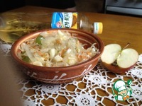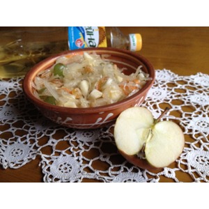 Описание: Одним из традиционных продуктов русской кухни является квашеная капуста. Заготавливают её рачительные хозяйки в октябре, прекрасно она сохраняется всю зиму. Каких только блюд не готовят из этого кладезя витаминов в зимний период! И щи, и тушат на второе и салаты... Я предлагаю попробовать немного нетрадиционный салат для русской кухни. Сладость изюма прекрасно гармонирует с кислотой квашеной капусты. Вкус оттеняет и дополняет яблоко и виноград. Угощайтесь!