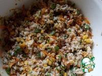 - вилкой разминаем рыбу до кашицы и добавляем к рису; |