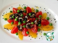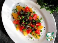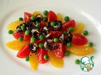 Креветки отварить в соленой воде до готовности, вынуть из воды, всыпать горошек, бланшировать 1 минуту, откинуть на дуршлаг. Апельсины филировать (сок собрать) |