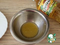 Для заправки смешать стекший апельсиновый сок, растительное масло Олейна и рыбный соус. |