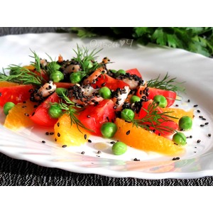 Описание: Поздравляю вас с Благовещением Пресвятой Богородицы! Сегодня на трапезе разрешена рыба и, соответственно, морепродукты! По этому случаю предлагаю вам попробовать этот праздничный, яркий и пикантный фруктово-овощной салат с креветками в кунжуте в стиле средиземноморской кухни. Очень вкусно! С Праздником!!!