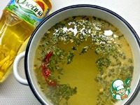 В кастрюлю налить 2 литра воды, довести до кипения. Подсолить по вкусу, добавить сушеный лук, палочку корицы и 1 перчинку чили. |