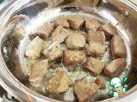 В сковороде разогреть масло и обжарить печень с двух сторон (1 минуту на одну сторону). Переложить в тарелку. P.S. Печень не солить перед или во время приготовления ( иначе станет жесткой или сухой) |
