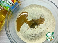 Муку просеять в миску, добавить соль по вкусу, тмин и подсолнечное масло Олейна. |