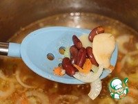 Описание: Постный суп получился волшебно-вкусным. Многоцветный, фактурный, с ярким и приятным ароматом. А для тех, кто Пост не соблюдает, нежный шелковый бонус - куриные кнели.