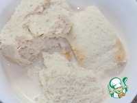 Скоромную добавку можно приготовить заранее. У ломтиков батона срезать корку и залить топленым молоком. |