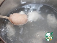 Верхней ложкой снять фарш с нижней ложки и опустить в кипящую воду. |