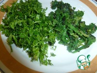 В это время нарезаем крапиву (можно её предварительно обдать кипятком) и петрушку. |