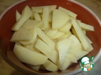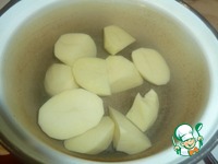 Сразу ставим варить з (половину от всего картофеля)очищенные картофелины. |