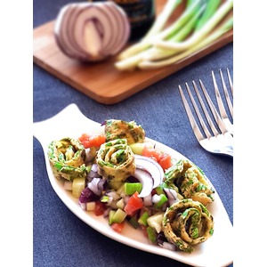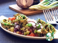 Описание: У меня зеленый лук всегда ассоциируется с весной. Может потому, что раньше это была первая зелень, которую выращивали в баночках на подоконниках. Предлагаю попробовать вкусный салат с семгой и омлетом!