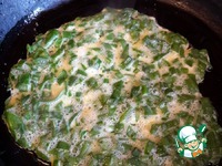 Разогрейте в сковороде масло, вылейте сюда омлетную смесь и поджарьте блинчик с двух сторон. |