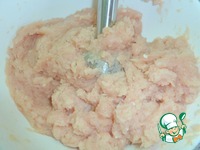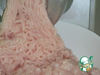 Филе куриной грудки и филе куриных бедер провернуть через мясорубку с крупной сеткой диаметром 18 мм два раза. |