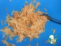 Яблоки натереть на крупной терке, добавить оставшийся сахар,2 ст. л. апельсинового сока. |
