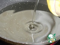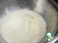 Добавляю светлое пиво тонкой струйкой, перемешивая. Пиво должно быть с газом! Остатки из холодильника не подойдут! |