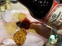 Утиные окорочка помыть. Обсушить. Сложить в подходящую ёмкость. Добавить специи. Налить соус-маринад. |