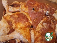 Хорошенько перемешать все специи с окорочками и оставить мариноваться. Я обычно убираю в холодильник и запекаю окорочка на следующий день. |