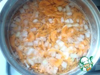 Воду наливаем в кастрюлю, доводим до кипения и выкладываем перловую крупу, которую можно замочить предварительно или просто сразу положить. Варим перловку 15 минут примерно. |
