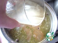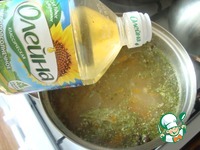 Отправляем специи в кастрюлю и добавляем подсолнечное масло. Ещё всё варим минут 5 до полной готовности рассольника. |