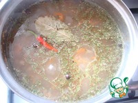 Вот теперь в кастрюлю добавляем рассол и досаливаем рассольник по вкусу. Доводим до кипения и снимаем с огня. |