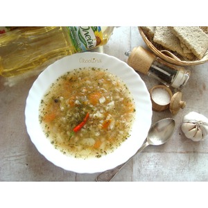 Описание: Постный рассольник с перловой крупой и маринованными огурцами, острый. Замечательное первое в пост.