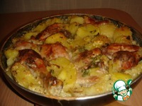 Вынимаем, даем нашему блюду "отдохнуть" минут 10 и наслаждаемся прекрасным ужином. Я подаю прямо в форме в которой запекаю. Можно подать легкий салат. |