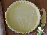 Оставшееся тесто тоже раскатать в круг и аккуратно выложить поверх крема. Края аккуратно скрепить и обрезать излишки теста. |