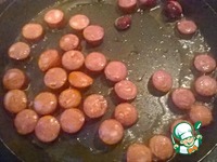 Колбаски порезать "кружочками" и обжарить Добавить в суп |