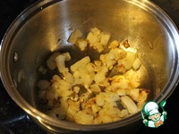 Лук нарезать средними кубиками, чеснок мелко порубить. Обжарить все вместе с 1 ст. л. растительного масла, до слегка золотистого цвета. |